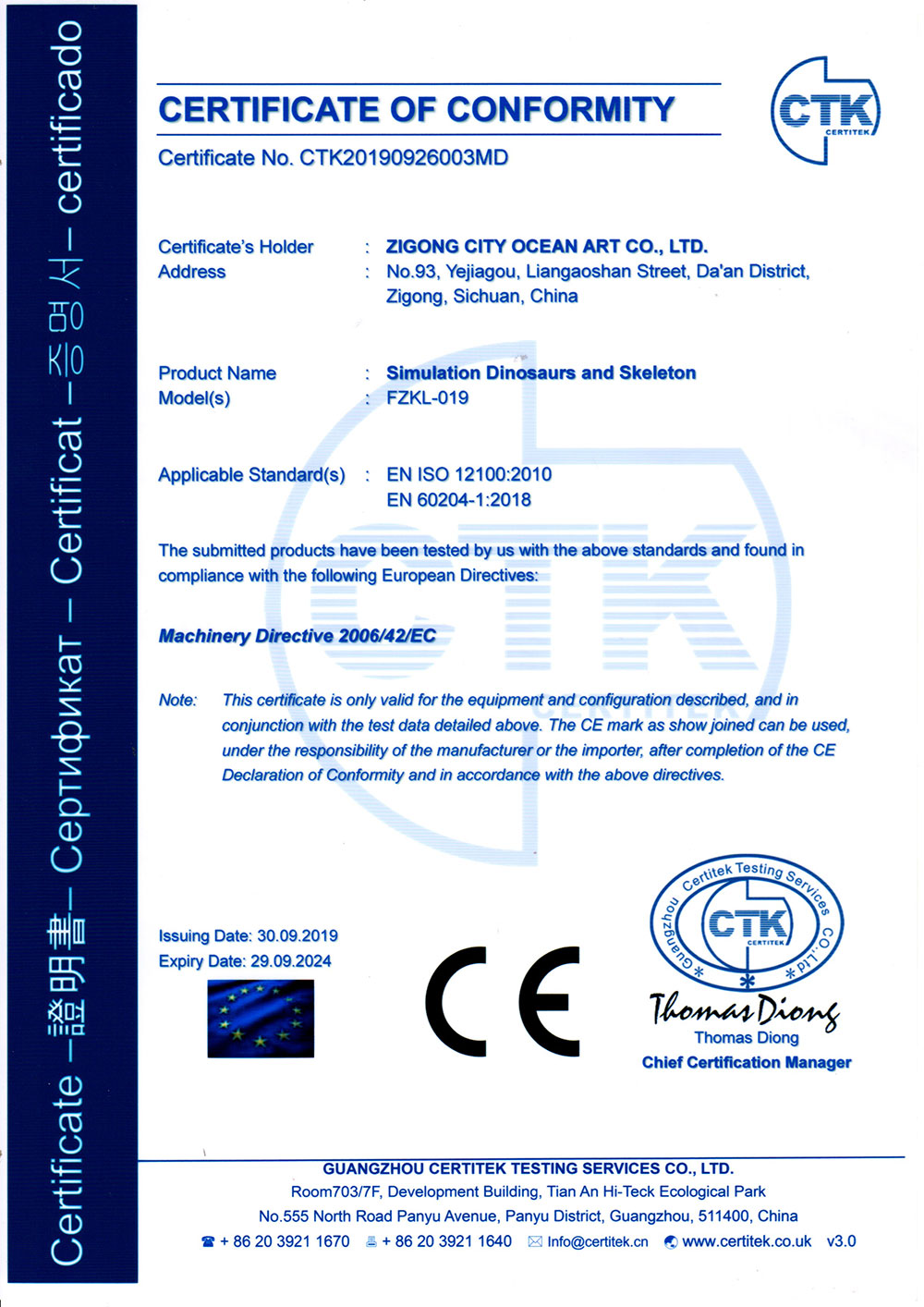 自A(ch)市大z艺术有限责d司简介自贡市大洋艺术有限责Q公司Qؓ(f)中国恐龙展品制作基地Q成立于2009q_是专业从事恐龙化石骨架标本模型、仿真活体机器恐龙、仿真雕塑恐龙、玻璃钢恐龙、恐龙游乐场互动讑֤{展品的研制开发、出售和展览的高U技企业。ƈ在中国古生物专家的指gq行开发制作恐龙和仿真动物展品Q所制作的恐龙展品,被中国科学院鉴定为“优UU研作品”,被誉为“侏|纪”的再现者。公司占地面U?0000qxcI有一支专业研制恐龙标本模型和机器恐龙展品的职工队伍和一套具有先q性能的生产设备,q生产能力ؓ(f)500万美元,其中U?0%的出口。我们研制和生的恐龙展品,以其造型逼真、表皮质感强、动作协调自如、组合情节科学、h(hun)格合理、售后服务佳而倍受国内外客L(fng)青睐和好评。十多年来,我们先后为美国、加拿大、阿根h(hun)、秘鲁、匈牙利、奥地利、荷兰、澳大利亚和我国的香港、台湑֜Z及北京自然博物馆、天z自然博物馆、上然博物馆、重庆自然博物馆、浙江自然博物馆、成都理工大学博物馆、太原中国煤炭博物馆、内蒙二q浩Ҏ(gu)龙博物馆、武汉中国地质大学博物馆、西峡恐龙蛋博物馆、朝阳鸟化石博物馆、河源恐龙博物馆、常州中华恐龙园、云南禄C界恐龙谷{地区的博物馆和恐龙主题公园以及人民公园制作和提供了相当数量的恐龙展品。同Ӟ先后为重庆恐龙公园、v南恐龙公园、晋江新世纪恐龙公园、番古生物博物馆、东莞古生物博物馆、西峡恐龙蛋博物馆设计和陈列布展?/div>